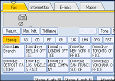 Tryk på fanen for transmissionstypen for at skifte transmissionstypen til fax/IP-fax, Internet-fax, e-mail eller mappe.