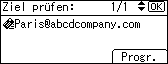 Um im Adressbuch des Geräts ein Ziel zu registrieren, nach dem auf dem LDAP-Server gesucht wurde und das dort ausgewählt wurde, rufen Sie das Ziel auf und drücken [Progr.].