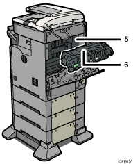 Maskinens insida blir väldigt varm. Rör inte delar med den här etikettet (indikerar het yta).