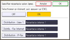 Si vous sélectionnez [OFF], le fax reçu est distribué à un magasin par défaut.