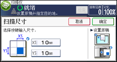 要显示自定义尺寸设置屏幕,请在初始扫描仪屏幕中按[发送设置] > [扫描尺寸] > [自定义尺寸] > [部分扫描]。