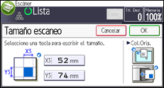 Introduzca los tamaños haciendo referencia a "Ajustes de escaneo en la pantalla de ajustes de tamaño personalizados".
