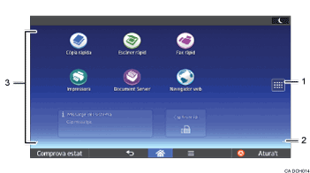 Per obtenir més informació sobre les tecles que apareixen tant a la pantalla [Inici] com a la pantalla de cada funció, consulteu Pantalla Com utilitzar les aplicacions estàndard.