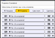 Registreu funcions en un programa per mitjà de les funcions Document Server, fax o escàner com també es fa amb la funció de copiadora. Registreu funcions en un programa per mitjà de les funcions de fax o escàner ràpid com també es fa amb la funció de còpia ràpida.