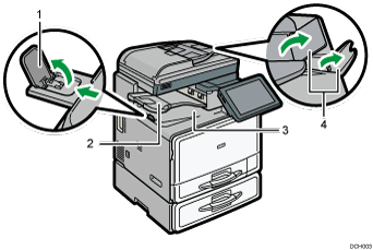 Lukk opp og løft opp endekanten for å støtte store papir.