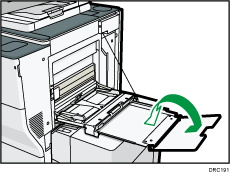 Hev støttebrettet for bannerark oppover mot maskinen til det høres et klikk, og vipp det deretter over på motsatt side.