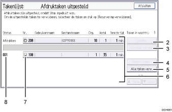 De taaklijst wordt weergegeven voor alle functies in de volgorde van de afdruktaken.