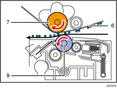 La polarisation est appliquée à l'aide d'un « courant constant » pour le transfert du tambour à la courroie et de la courroie au papier, car cette méthode tolère bien les changements d'environnement et d'épaisseur des supports.