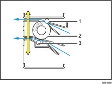 A seconda dell'intensità dell'antiarricciamento e della direzione dell'arricciamento (fronte o retro) specificati in Impostazioni avanzate, il rullo metallico superiore o inferiore preme il foglio e consegna i fogli al percorso della carta superiore o inferiore.