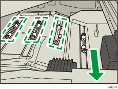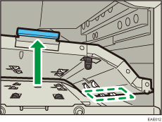 Løft E2-armen, og tør den transportrulle, der er angivet på billedet nedenfor, i en retning, enten fra bag til for eller fra for til bag.