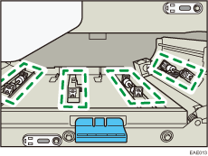 Når du bruger NPC-papir, skal du rengøre rullen for at forhindre udtværinger på papirets udskriftsside, når transportrullerne på de følgende steder bliver beskidte.