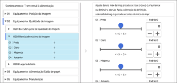 Estão disponíveis as seguintes operações para cada item de ajuste: