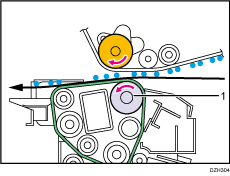 Il PTR [1] ha la funzione di consegnare la carta dal rullo di sincronizzazione del trasferimento della carta.