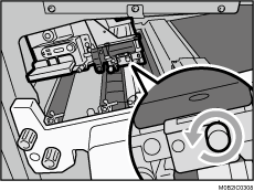 Dopo aver pulito i rulli sul revolver, installare nuovamente il vetro di contatto e serrare la vite. Mentre si inserisce il vetro di contatto, allineare le frecce.