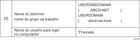 [2] | Nome do domínio/nome do grupo de trabalho | USERDNSDOMAIN: ![]() ![]() USERDOMAIN: ![]() ![]() |
