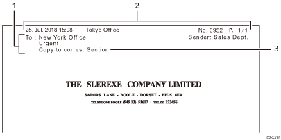 Puede imprimir el nombre del destino, el encabezado del fax y un mensaje estándar en la página recibida en el destino, junto con la imagen del original enviado por fax. Especifique previamente la información que se imprimirá en la página recibida.