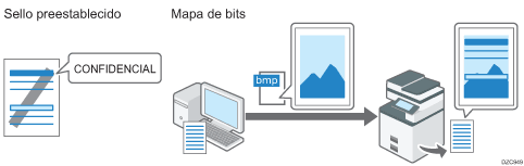 Puede imprimir texto preestablecido, como "CONFIDENCIAL" o "URGENTE" en un documento.