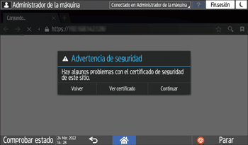 4Haga clic en [Activo], de "Comprobación de certificado raíz", para importar el certificado de sitio.