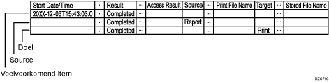 Hiermee wordt het "Resultaat", de "Status" en de invoerinformatie van het takenlogboek van veelvoorkomende items uitgevoerd. Als er meerdere bronnen zijn, worden er meerdere regels uitgevoerd.
