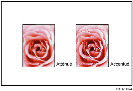 [Accentué / Atténué], [Contraste] et [Densité arrière plan] peuvent être chacun ajustés individuellement ; cependant, leurs ajustements peuvent affecter le niveau des autres fonctions d'ajustement.