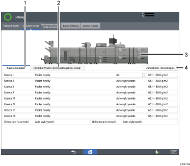 Na ekranie [Ust.kasety na pap.] można określić ustawienia papieru dla kaset i modułu przekładek oraz skonfigurować ustawienia papierów funkcjonalnych.
