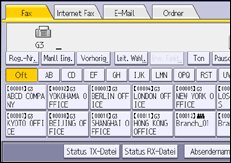 Drücken Sie [Fax], [Internet Fax], [E-Mail] oder [Ordner], um die Übertragungsart zu ändern.