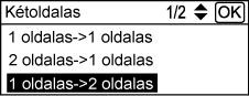 ] gombot az [1 oldalas->2 oldalas] vagy [2 oldalas->2 oldalas] másolás kiválasztásához, majd nyomja meg az [OK] gombot.