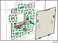 Insérez les cinq saillies du capot intérieur fourni dans les encoches de l'imprimante.