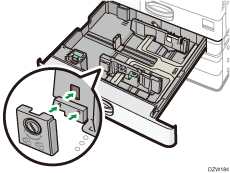 해제 레버를 누른 상태에서 너비와 길이 조정대를 용지 크기에 맞게 조절합니다.