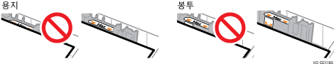 용지와 용지 가이드가 수평을 이루어야 합니다. 그렇지 않으면 이미지가 비뚤게 인쇄되거나 급지 오류가 발생할 수 있습니다.