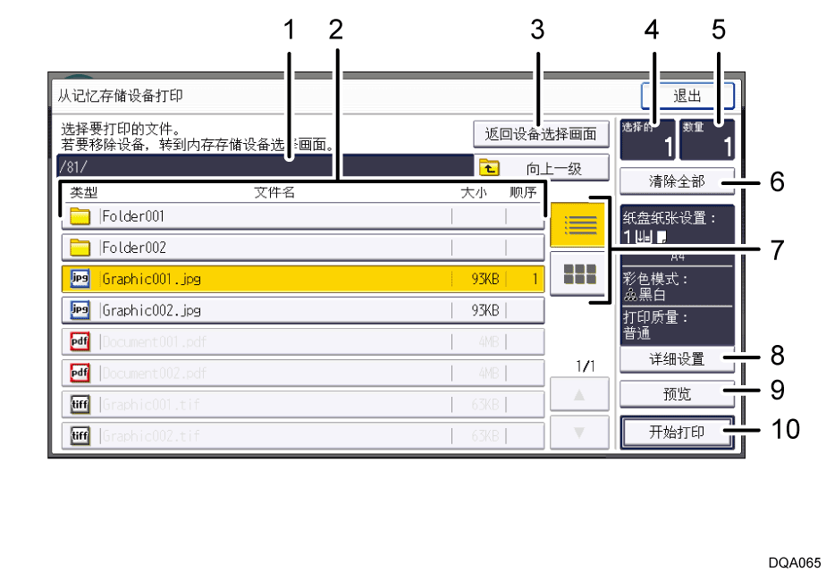 在直接打印画面上,您可以通过列表或缩略图方式查看文件。