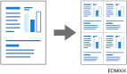 Durante la copia (Ripetizione) è possibile collocare i duplicati dell'originale scansionato su un unico foglio di carta. Per copiare un originale in un formato inferiore al formato minimo che può essere copiato sulla macchina, copiare l'originale combinando Riduci copia e Ripeti, quindi tagliare la carta copiata.