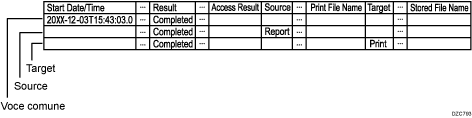 Quando il registro è di tipo "Limite uso volume stampe: monitoraggio risultato autorizzazione", viene indicato il nome del server della destinazione a cui non è stato possibile inviare le informazioni di monitoraggio.