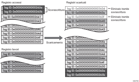 Quando i due registri accessi più vecchi vengono sovrascritti con i due più recenti, i registri scaricati non hanno un ID registro.