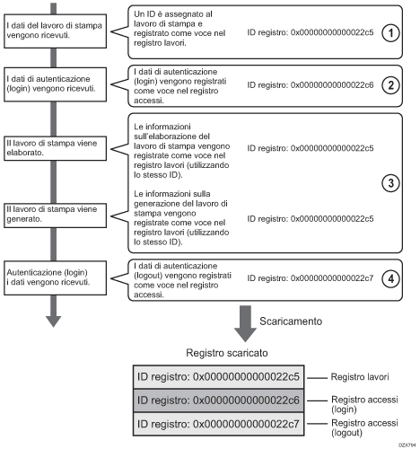 Le voci nei registri di stampa vengono registrate prima delle voci di login nel registro accessi.