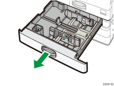 要装入大于A3的纸张,请将纸盘完全拉出,然后更改两个辅助侧挡板的位置。
