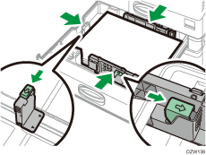 根据纸张尺寸调整侧挡板和末端挡板。当装入尺寸大于A3的纸张时,还要更改辅助侧挡板的位置。