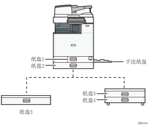 要装入薄纸、厚纸或其他特殊纸张,请在[设置]的[纸盘纸张设置]中指定纸张类型或厚度。