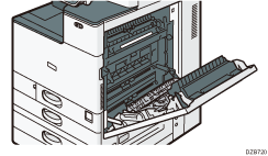 右盖板内部的区域包含高温表面。在打开右盖板来取出纸张时,稍等片刻,让高温部件冷却后再执行相应过程。
