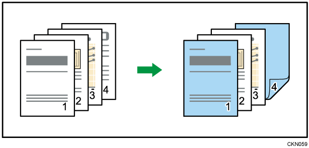 该功能将原稿的第一页复印到已被指定为封面的纸张上,或者在复印第一页之前先放一张封页纸。