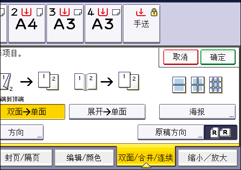 按[双面/合并/连续]。