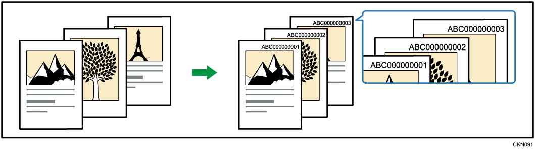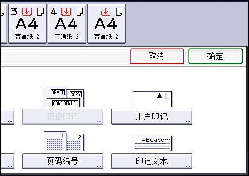 您可以在用户工具中的[印记文本]下更改印记文本的设置。有关详细信息,请参见设备的《用户指南》。
