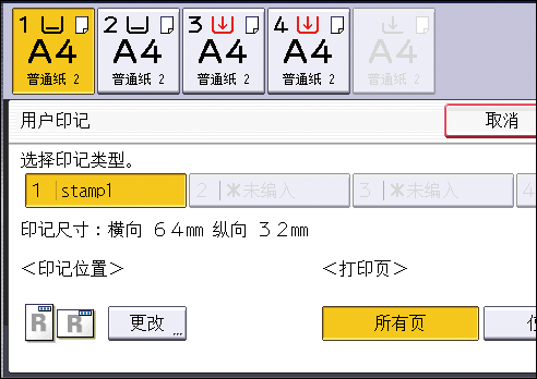 您可以在用户工具中的[用户印记]下更改用户印记的设置。有关详细信息,请参见设备的《用户指南》。