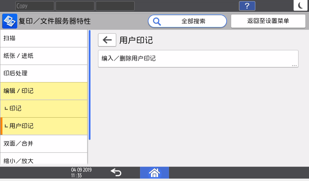 [编入/删除用户印记]。