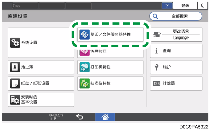 按[复印机/文件服务器特性]。