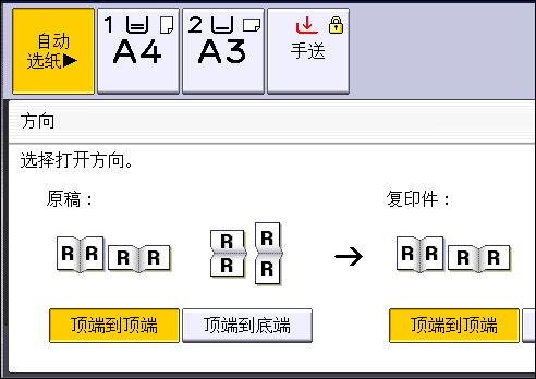 如果原稿是双面,或者想要复印到纸张的两面上,则选择原稿和复印件的方向。
