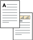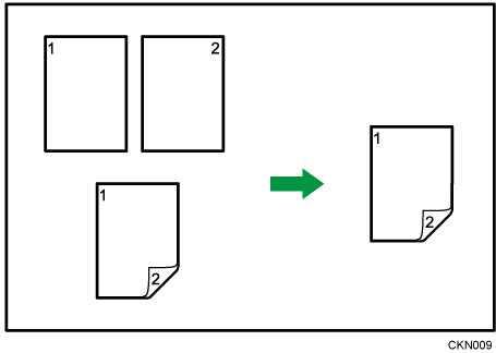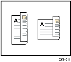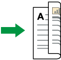 将两张单面页或一张双面页复印到一张双面页上。在复印期间,图像会偏移以留出装订边距。