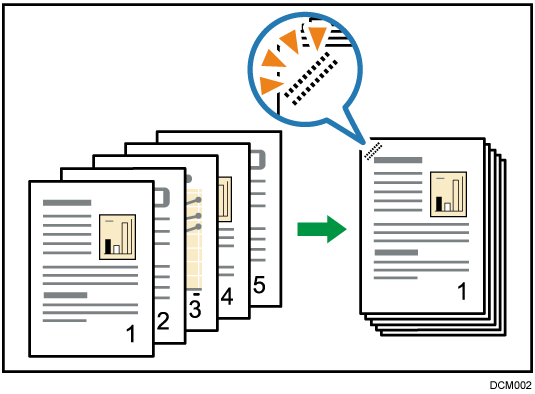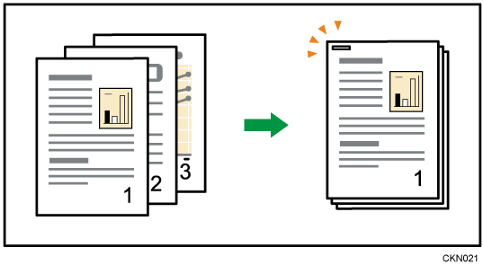 要指定“左侧 2”,“顶部 2”或“倾斜”与[合并单面]的[2张原稿]或[8张原稿],或[合并双面]的[4张原稿]或[16张原稿]时:为