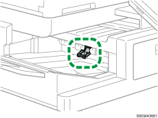 Si le message s'affiche même lorsque vous retirez le papier coincé, ouvrez le capot avant du finisseur, tournez la molette dans le sens horaire ou anti-horaire, puis retirez le papier coincé (IM C400SRF uniquement).