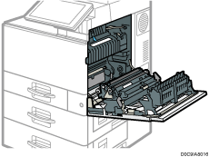La zone se situant à l'intérieur du capot droit contient des surfaces chaudes. Lors de l'ouverture du capot droit pour retirer du papier, attendez quelques instants afin de laisser les parties chaudes refroidir avant d'effectuer la procédure.